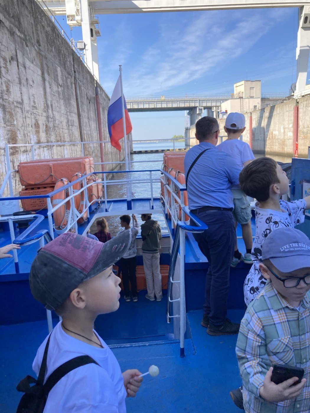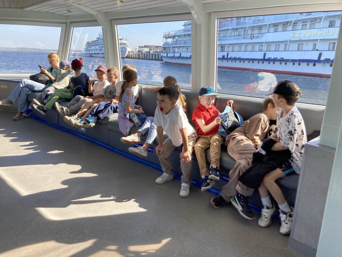 Начали свою поездку ребята на водном трамвайчике. Красивые волжские пейзажи, шлюзование, речной порт, где разгружали баржи, капитанская рубка очень впечатлили наших второклассников.
