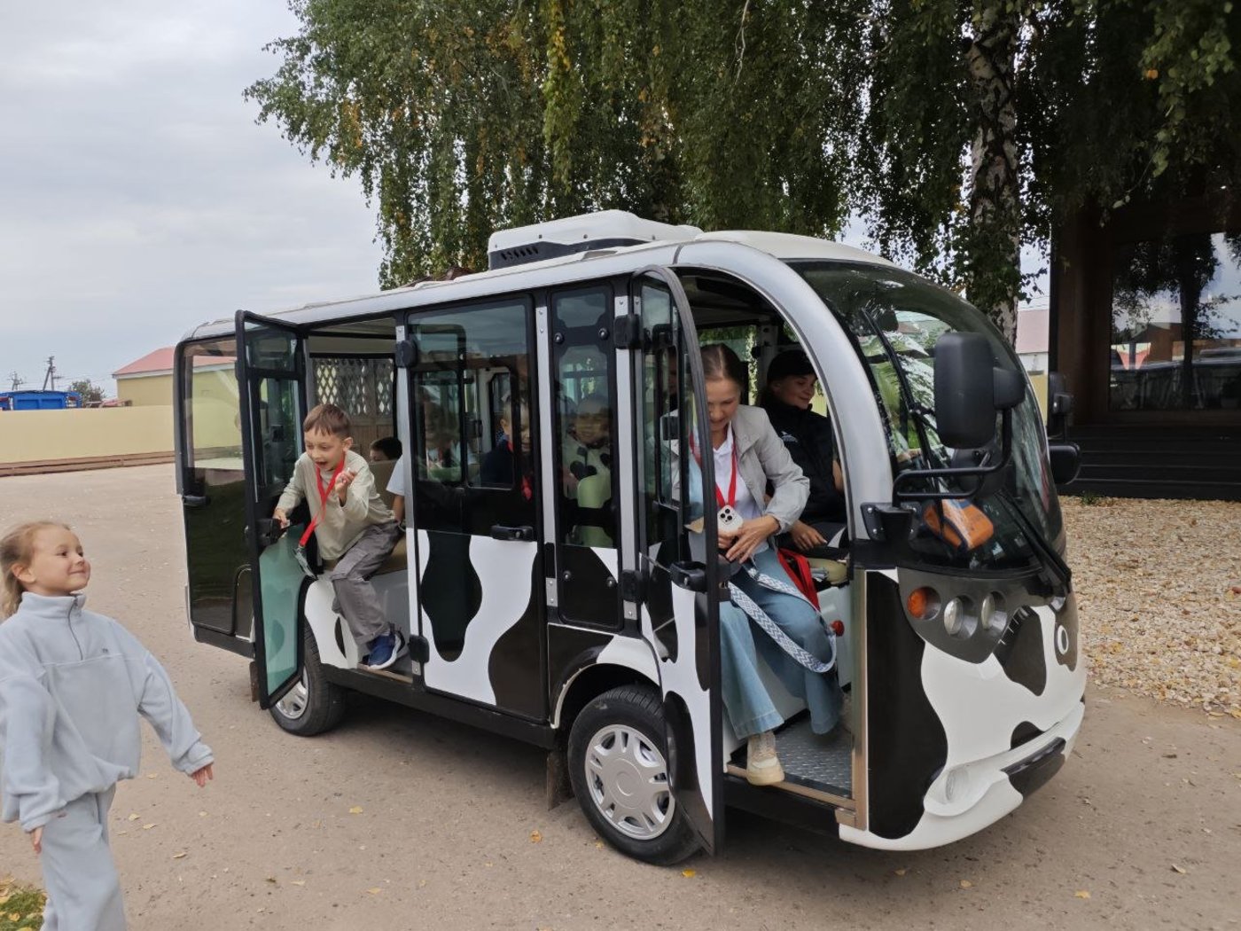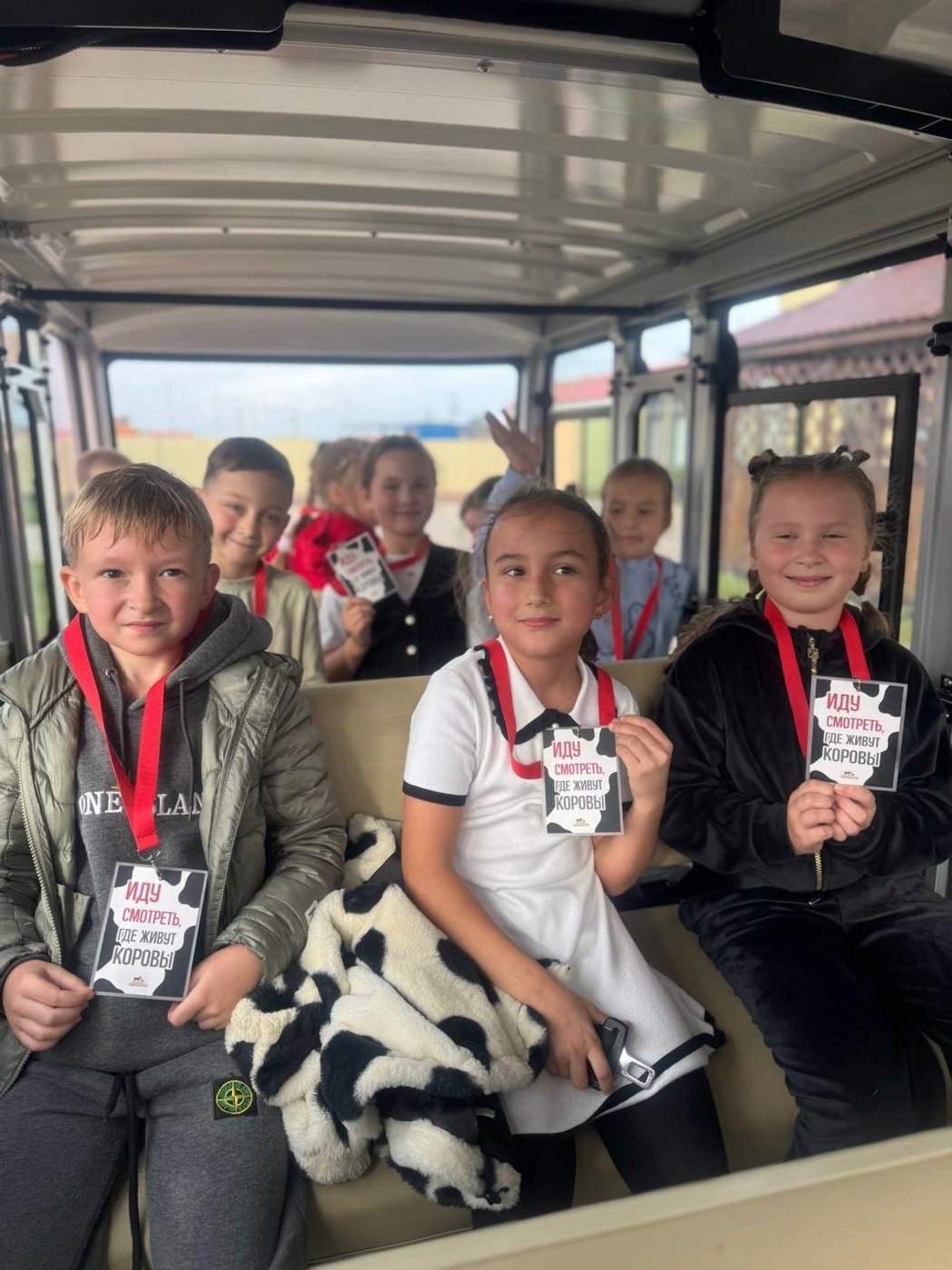 На пороге агропарка ребят радушно встретили работники. После небольшого инструктажа началась экскурсия. На небольшом экскурсионном автобусе второклассники отправились к коровам. Ребята увидели, как живут коровы, как их кормят, как убирают коровники.