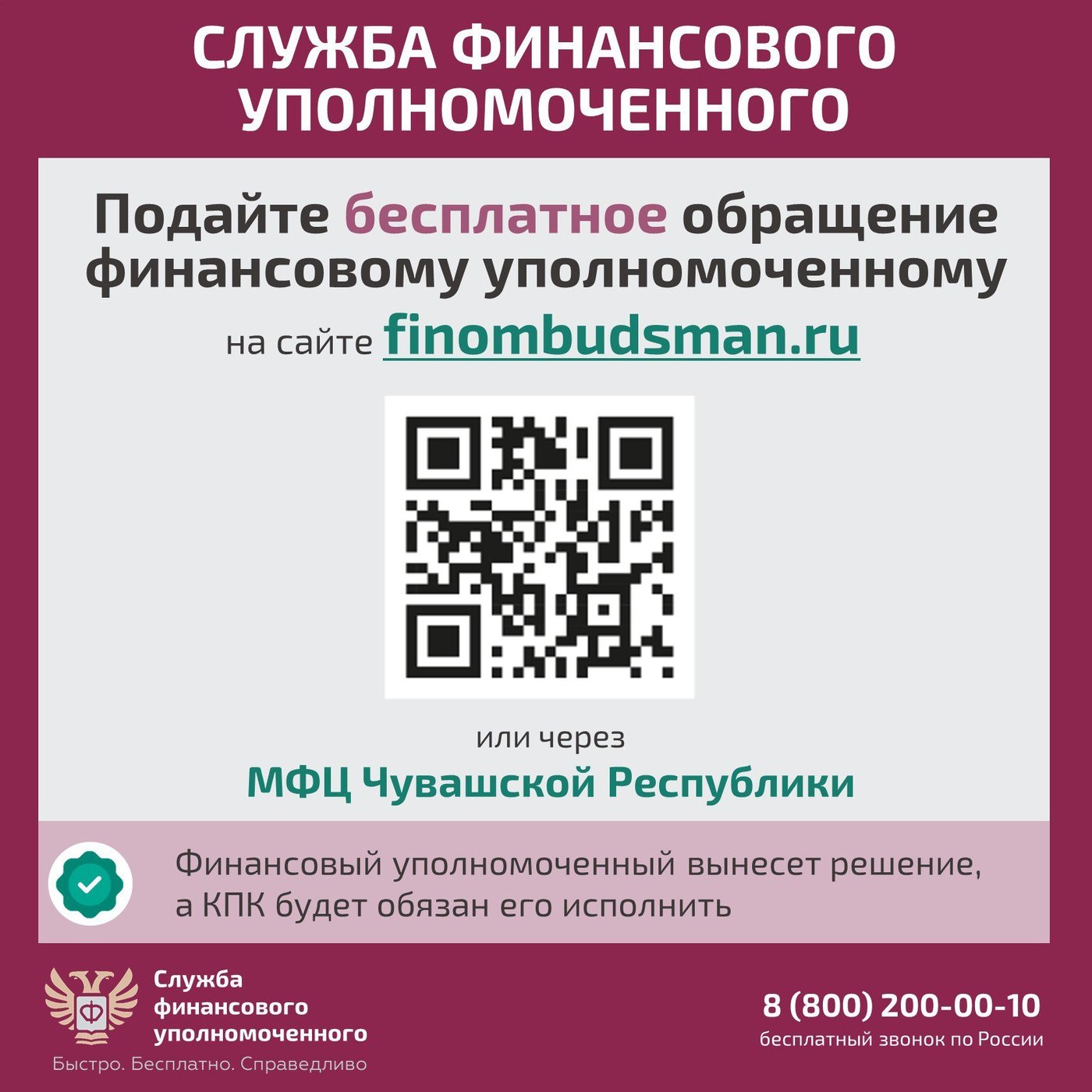 Направить обращение финансовому уполномоченному можно через личный кабинет на сайте finombudsman.ru или через МФЦ Чувашской Республики.