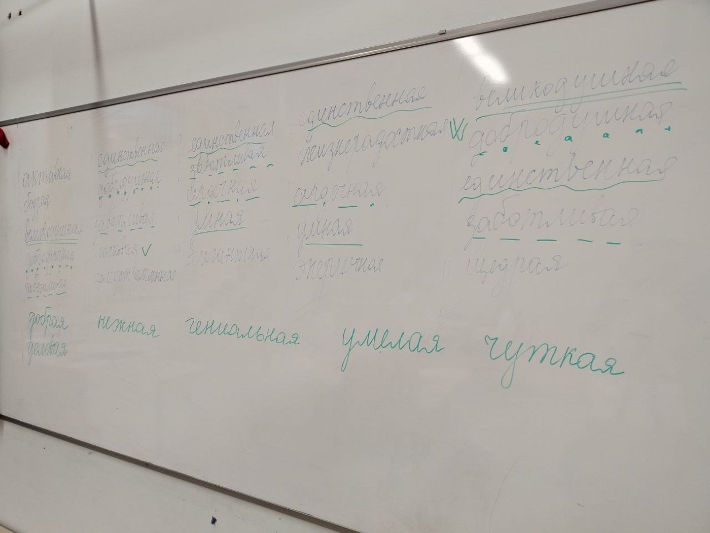 Мастерская прошла в атмосфере доброты и тепла. Дети смогли найти много замечательных слов, пословиц, стихотворений своим мамам. Мамы высказали слова благодарности своим мамам.
