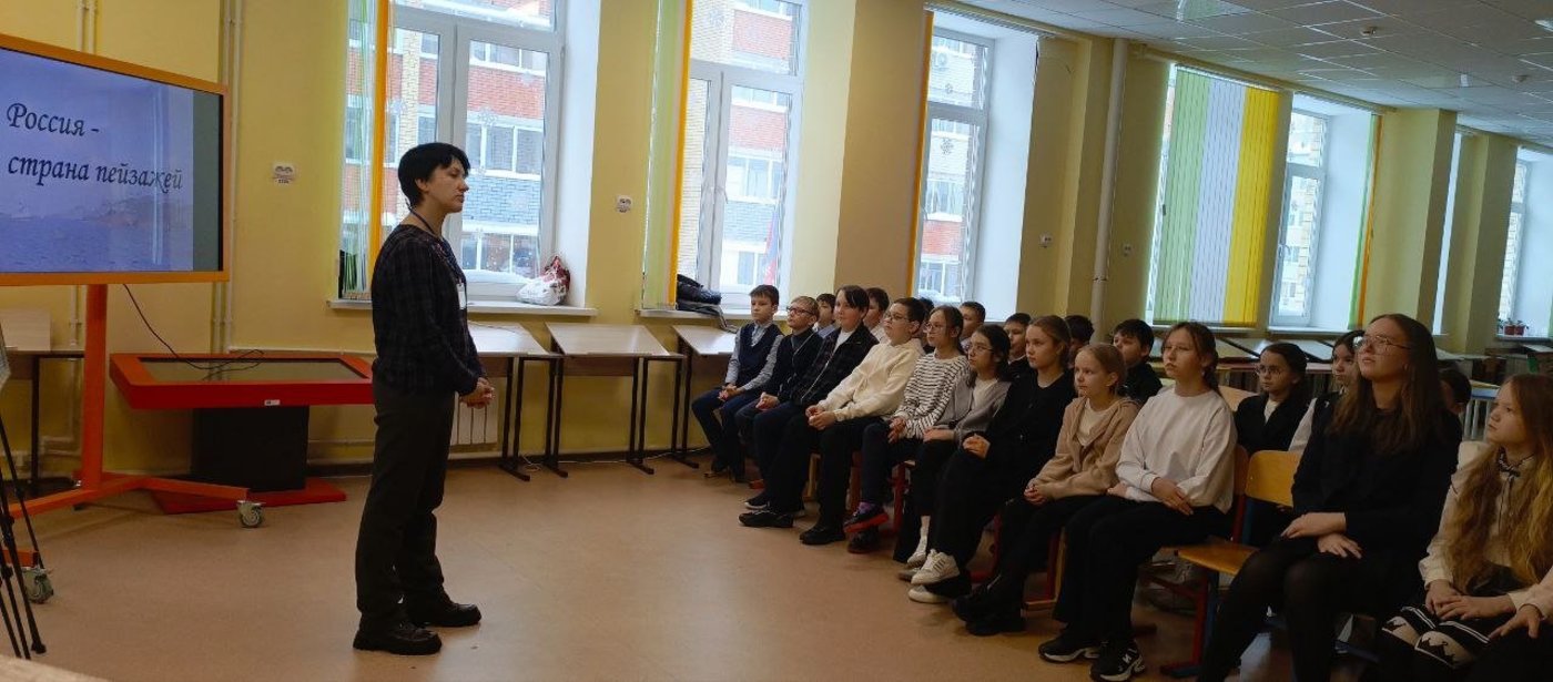 «Россия — страна пейзажей», — так считал великий русский художник Иван Иванович Шишкин. И убедиться в этом предстояло нашим ученикам. Работы Исаака Левитана - мастера "пейзажей настроения" и выдающегося советского художника Александра Герасимова учат видеть красоту родного края, ценить и беречь его.