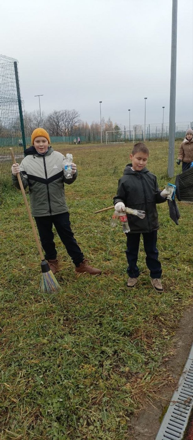 Ученики СОШ 1 продолжают поддерживать чистоту на территории школы и вокруг нее. 5Д класс с классным руководителем Фадеевой М.Л. собрали мусор на школьном стадионе, подмели игровую площадку.