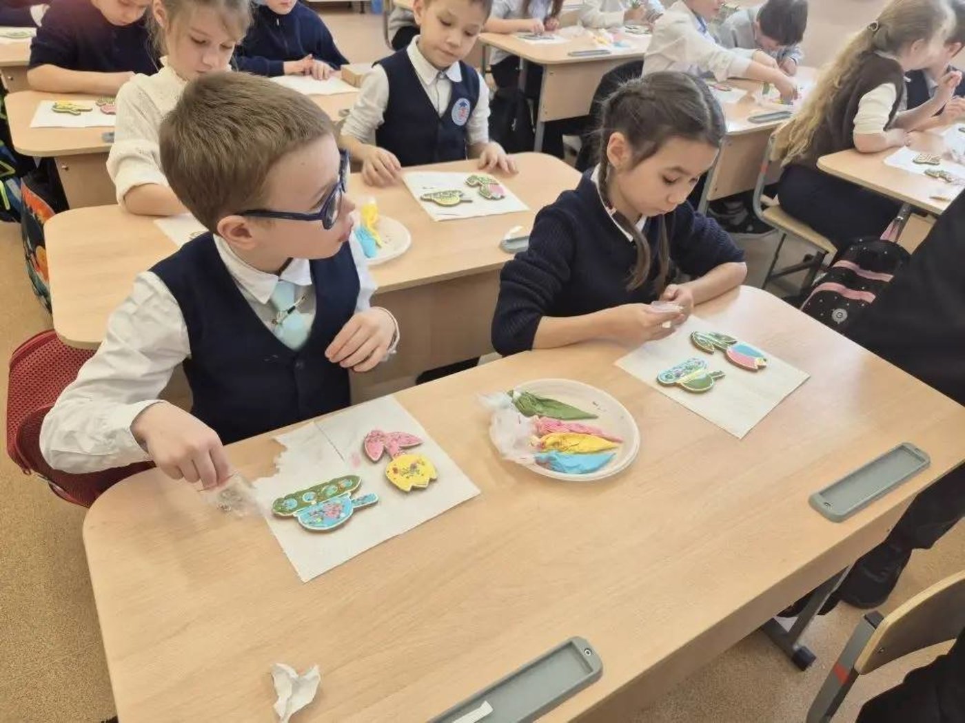 2 марта в рамках празднования Дня защитника Отечества и Международного женского дня во 2 И классе (классный руководитель Эрень Марина Ивановна) прошёл мастер-класс по росписи пряников. Один пряник был в форме танка, символа силы, мужества, отваги, а второй - в форме тюльпана, символа весны, нежности, красоты! Ребята творчески подошли к работе, и изделия получились разные, но все яркие, красочные, праздничные! Все были очень довольны!