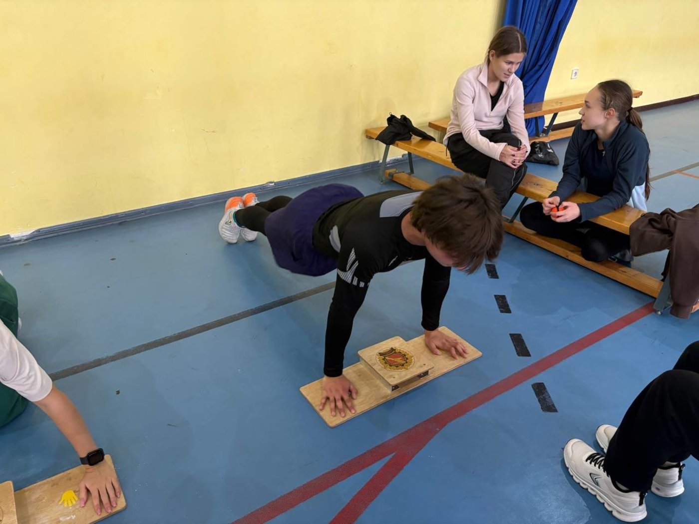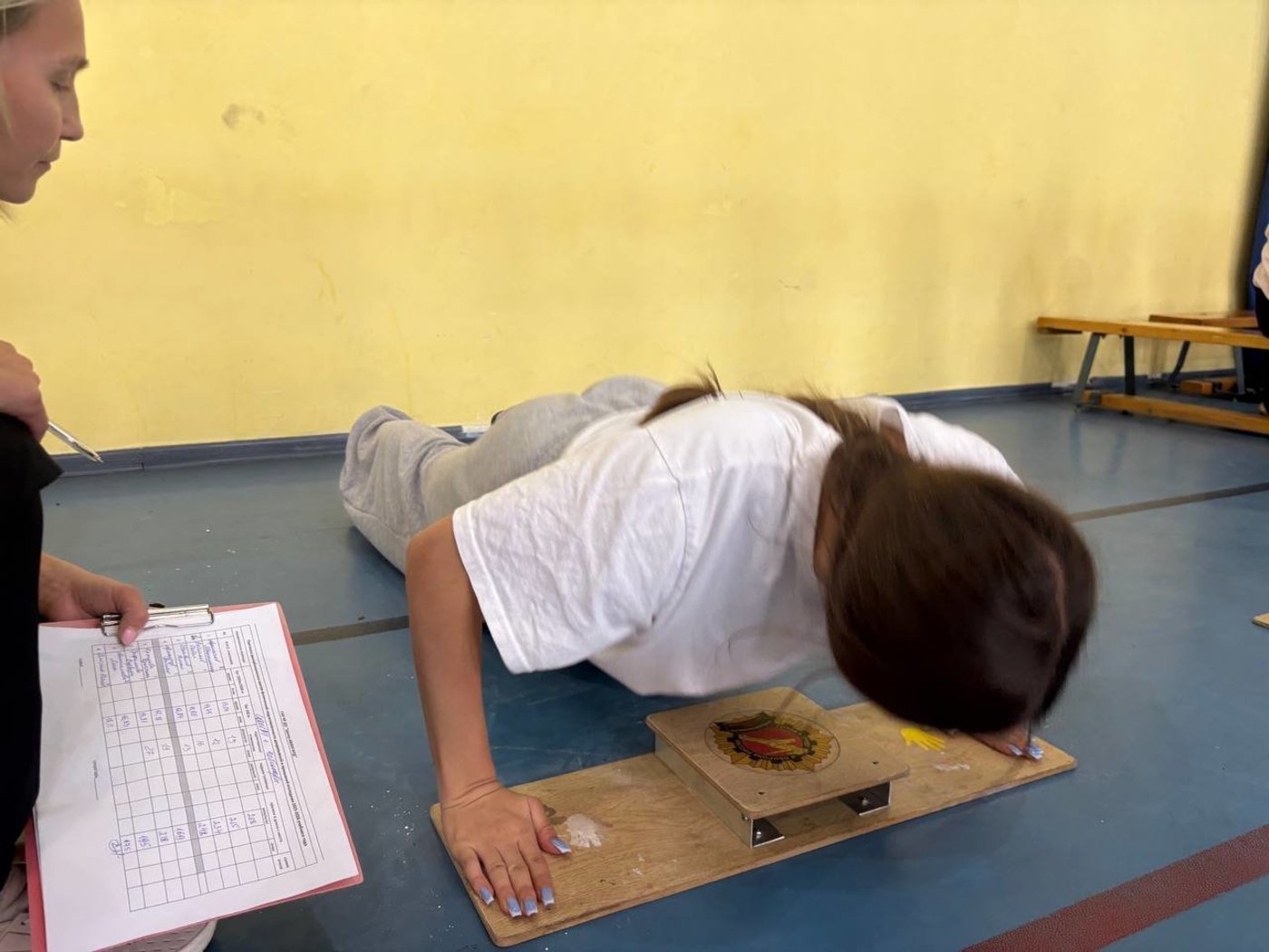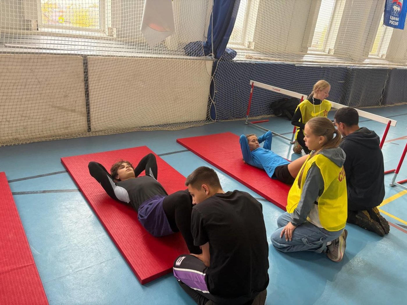 Ребята соревновались в следующих дисциплинах: 1. Бег на средние дистанции, подтягивание на высокой перекладине (юноши), сгибание и разгибание рук – отжимание (девушки), бег 100 м, поднимание туловища из положения лежа на спине (пресс) в течение 1 мин., прыжки в длину с места. Дисциплины выполняются по методическим рекомендациям ВФСК «ГТО».