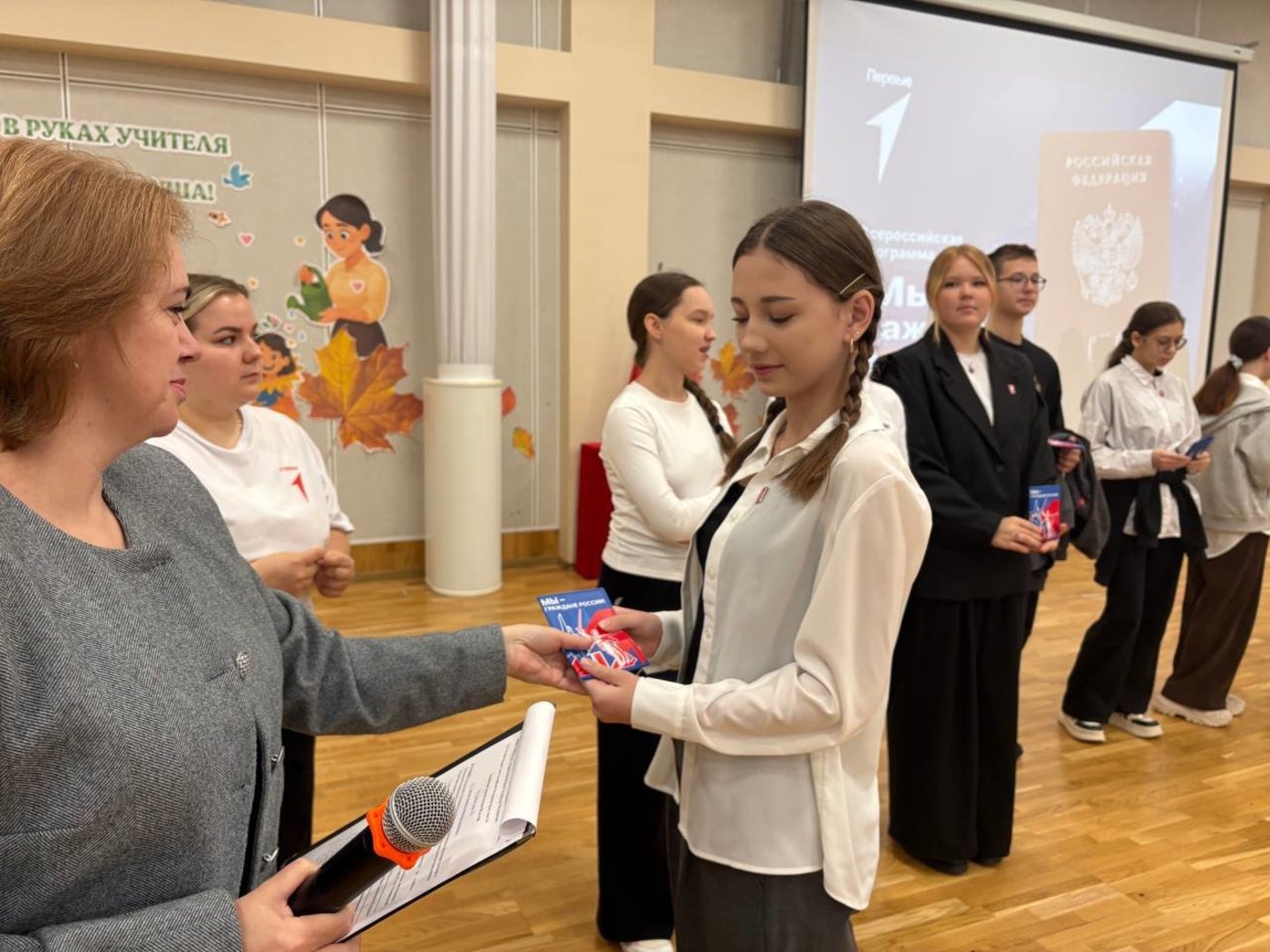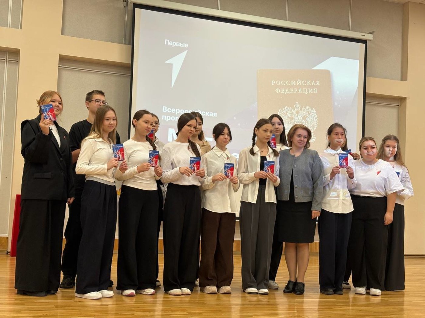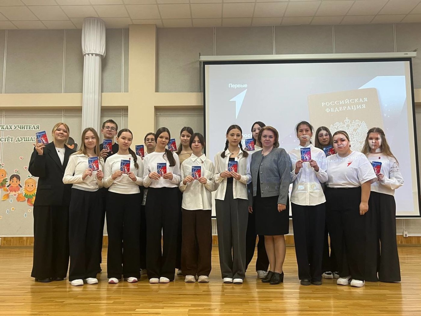 В рамках Всероссийского проекта "Мы - граждане России" , 6 октября в актовом зале МАОУ "СОШ № 1" г. Чебоксары состоялась торжественная церемония вручения паспортов и памятных обложек от "Движения Первых" юным жителям Чувашской Республики.