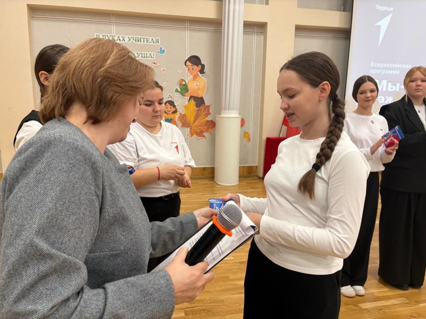 Поздравить юных граждан и вручить им важный документ пришла Рыбакова Александра - специалист муниципального отделения Движения Первых города Чебоксары.
