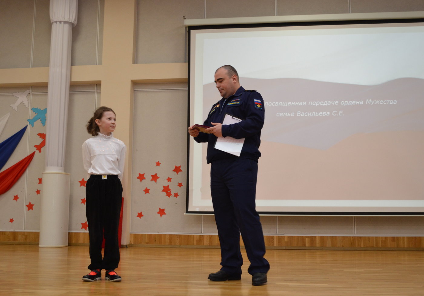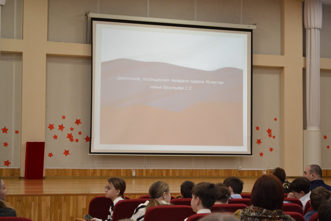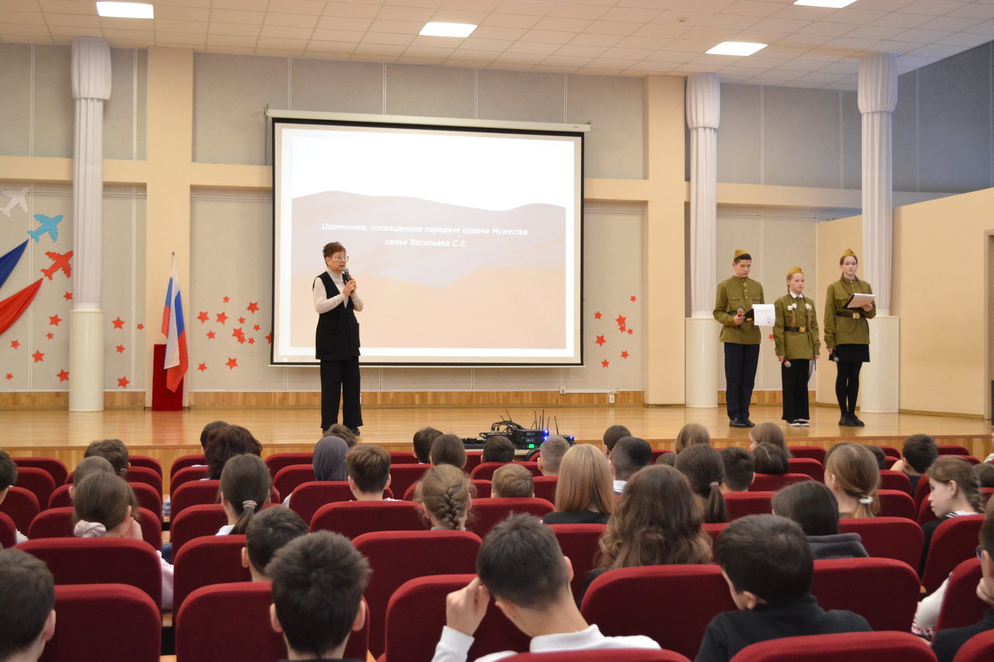 2 февраля в СОШ 1 состоялась церемония передачи боевой Государственной награды семье Васильева Станислава Евгеньевича, погибшего в ходе выполнения специальной военной операции.