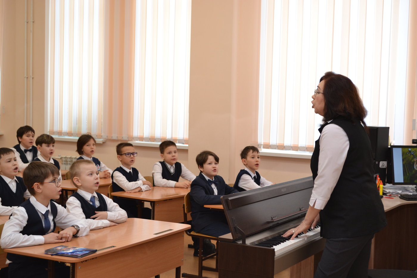 Гостей из Китая очень интересовала русская и чувашская культура, традиции, песни, танцы. Они познакомились с методикой преподавания музыки на уроке по теме "Изобразительность и выразительность музыки", побывали на занятии Хора мальчиков нашей школы, которые провела учитель музыки СОШ 1, заслуженный учитель Чувашской Республики Васильева Татьяна Вениаминовна.