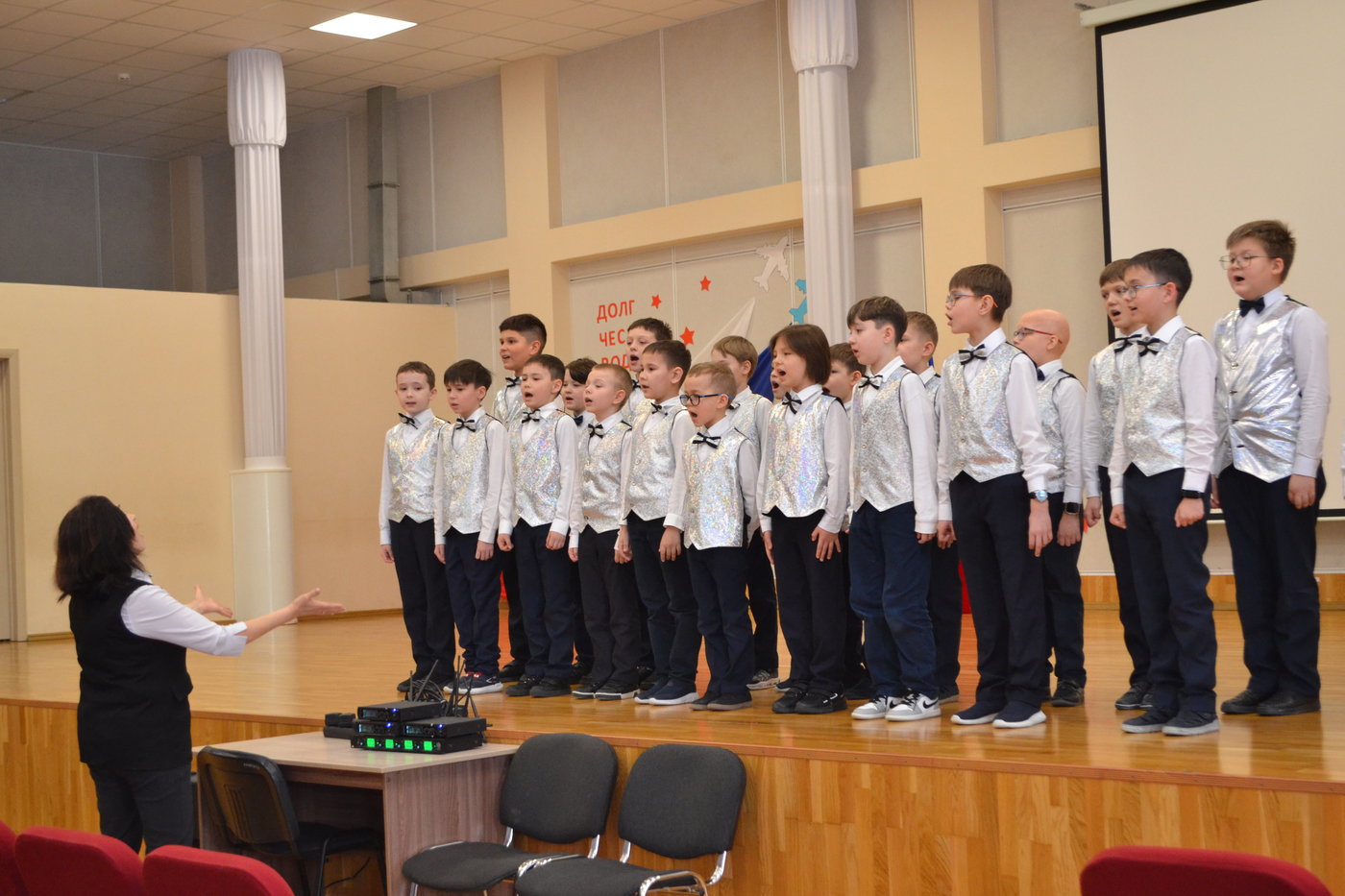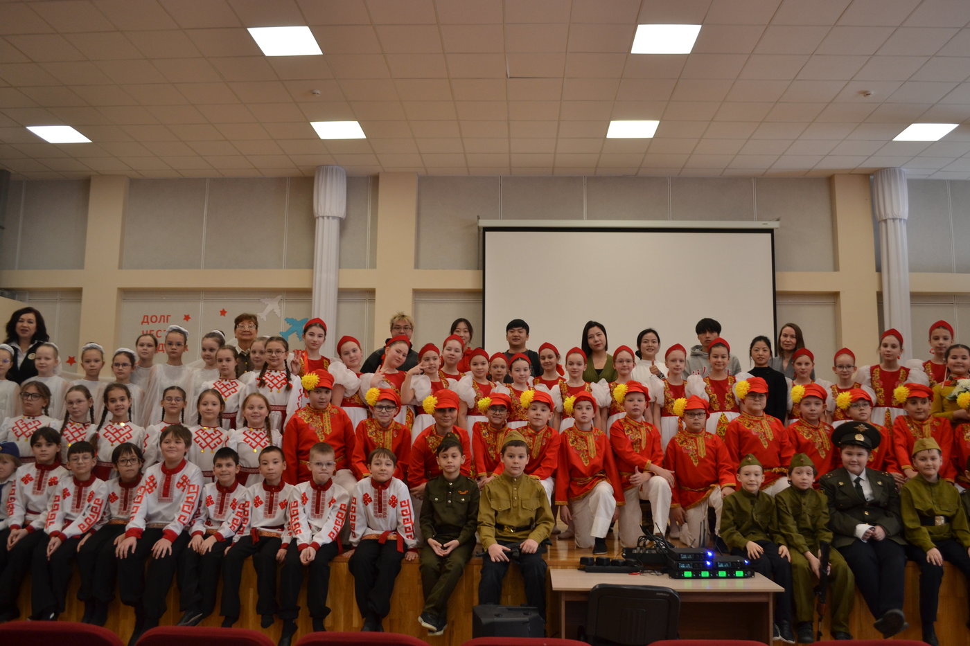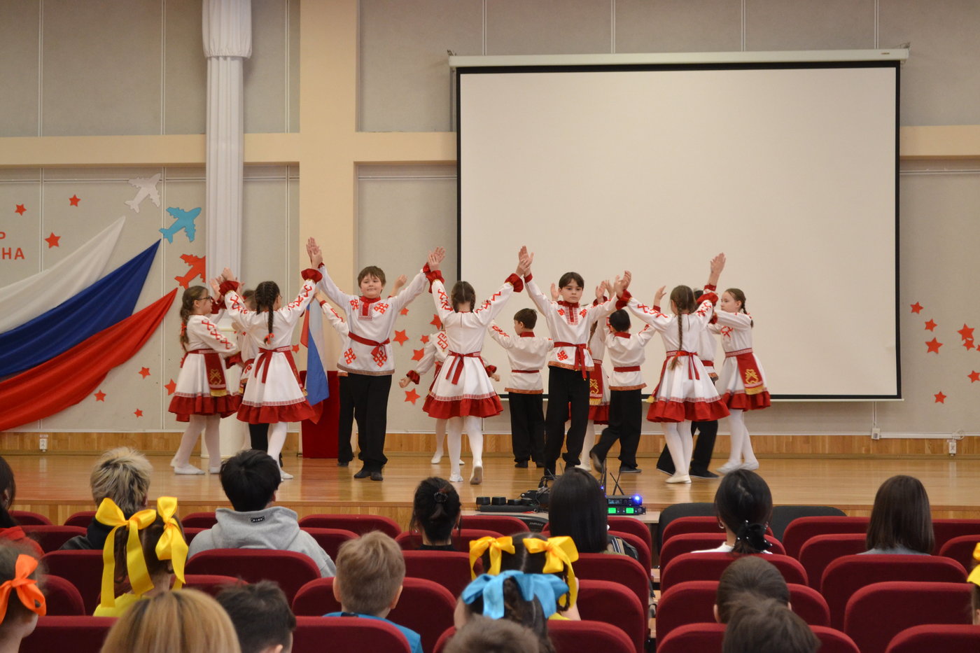 Ученики начальных классов подготовили для гостей концерт, на котором исполнили чувашскую народную песню "Кумаляк", песни военных лет, а так же удивили гостей танцами.