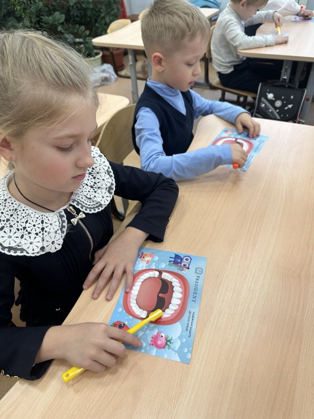 Дети узнали о компонентах зубных паст, о разнообразии дополнительных зубных приспособлениях. Также прошёл мастер-класс по чистке зубов при поддержке бренда presiDENT . Используя специальные макеты зубов, стоматолог доступно показала, как правильно чистить зубы, а как не стоит.