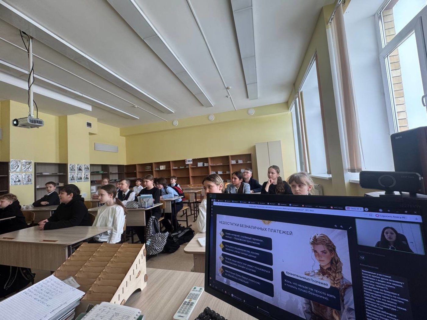 Урок на тему "Как менялись платежи: от натурального обмена до оплаты улыбкой?" познакомил пятиклассников с историей платежей — от натурального обмена (когда люди менялись товарами напрямую) до современных электронных денег. Ученики узнают, как эволюционировали деньги — от ракушек и золота до привычных монет и купюр, с современными способами оплаты — обсуждение, какие преимущества и недостатки у каждого из них (наличные, банковские карты, электронные кошельки, со способами защиты от мошенников — ученики узнают, как не стать жертвой мошенников в интернете, как защитить свои деньги и личные данные, о перспективах развития платежей — ученикам предлагается задуматься над будущим платёжных систем, включая инновационные методы вроде «оплаты улыбкой», основанной на распознавании лиц и эмоций. Урок построен в виде занимательной игры, ученики вместе с Хранительницей Платежей разбираются в видах оплаты и помогают школьнице из Города Финансов, случайно оказавшейся в загадочном Мире Платежей, добраться до портала. Знания закрепляются с помощью интерактивных заданий.