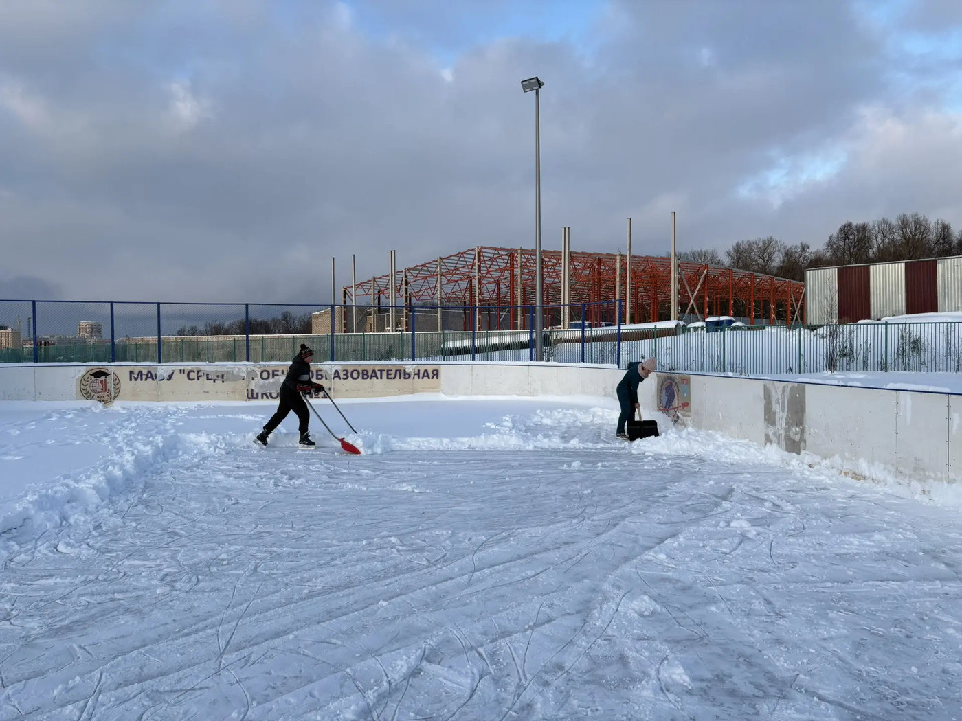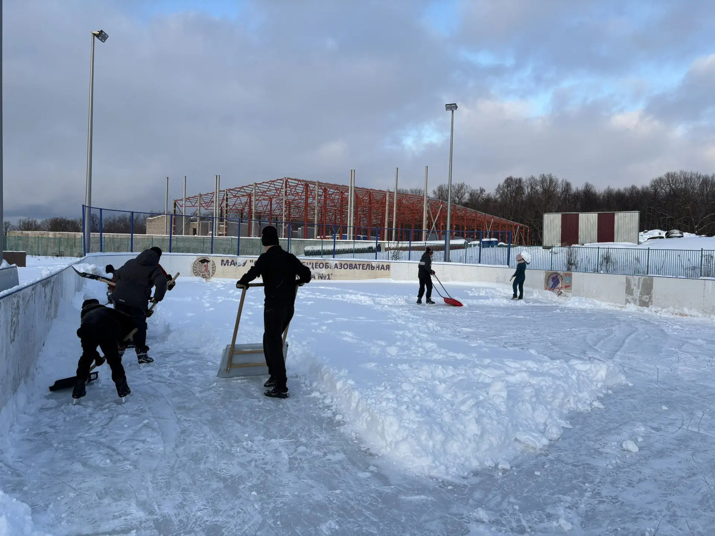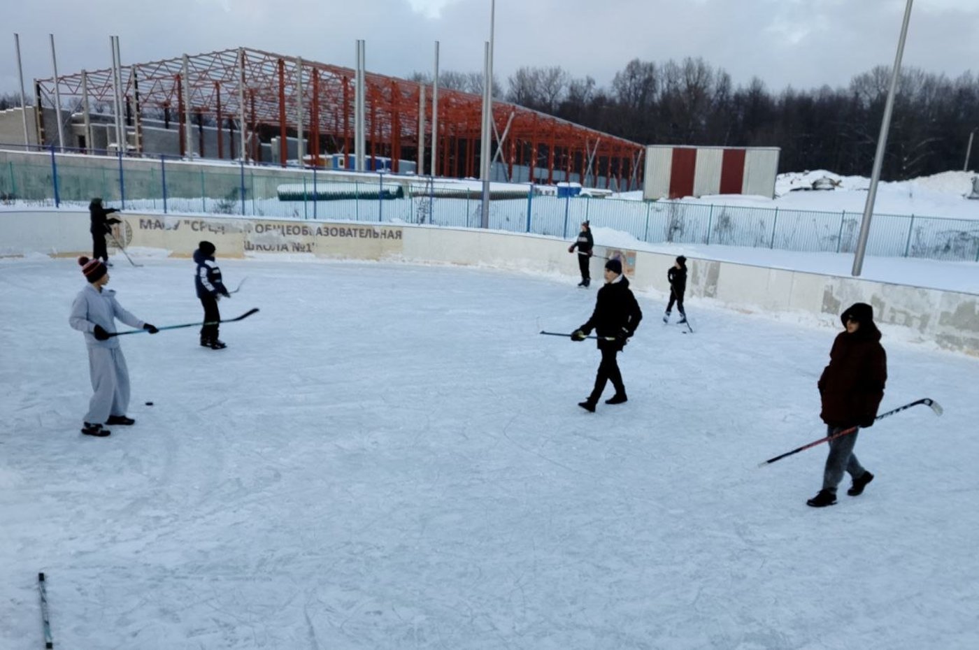 На стадионе СОШ 1 работает каток! После метелей и снегопадов обучающиеся под руководством учителя физической культуры Ивановой Натальи Юрьевны расчистили лед.