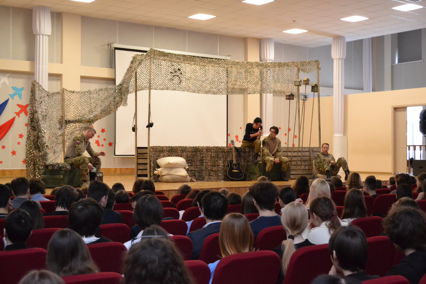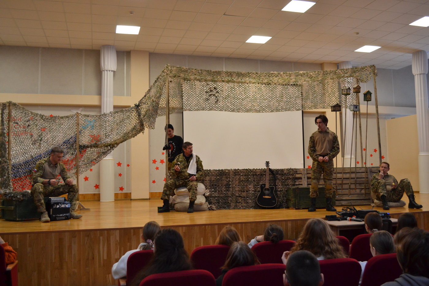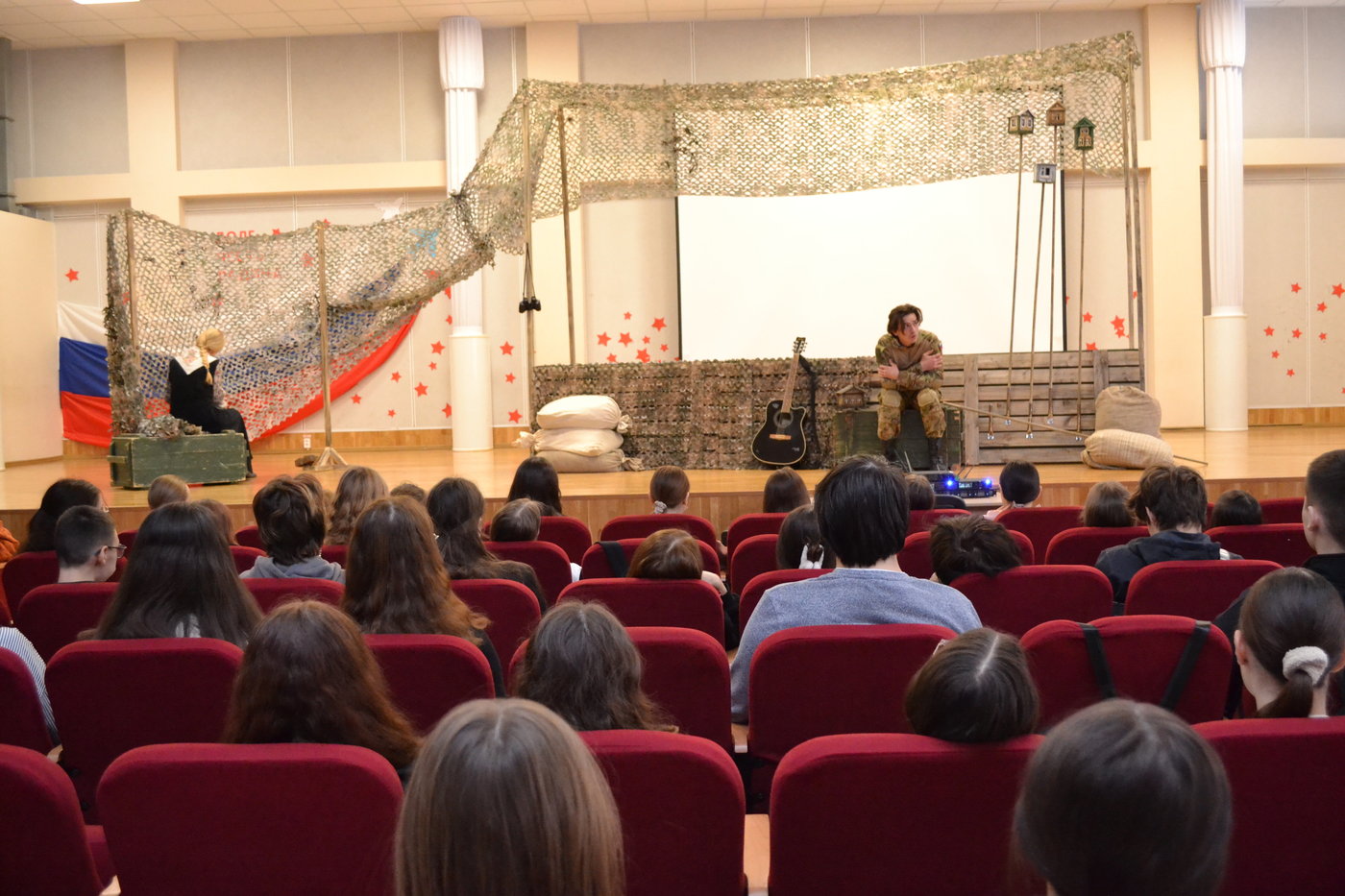 28 января в рамках месячника оборонно-массовой, военно-патриотической и спортивной работы, а так же проектов "Пушкинская карта" и "Театральная среда" в СОШ 1 состоялся показ спектакля "Жизнь за други своя" Чувашского академического драматического театра.